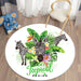 Gönnen Sie sich eine exotische Auszeit ohne zu verreisen: unser runder Tropical Design Teppich bringt das Gefühl dichter Dschungel, üppiger Blätter und zarter Blüten direkt in Ihre Räume. Das dezente Zebra‑Muster kombiniert mit tropischen Blättern und farbenfrohen Blumen verleiht Wohnzimmer, Schlafzimmer oder Ihren Eingangsbereich sofort frische, lebendige Akzente.