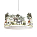Die Dschungel Savanne Hängelampe wird aus hochwertigen Materialien gefertigt, um Langlebigkeit und Sicherheit zu gewährleisten. Das Lampenschirmmaterial besteht aus einem robusten Stoff auf PVC, während der Rahmen aus Metall und Kunststoff gefertigt ist. Das weiche, warmweiße Licht schafft eine beruhigende Atmosphäre, die zum Entspannen und Träumen einlädt.