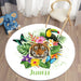 Verwandeln Sie Ihr Zimmer in eine ferne Oase mit unserem runden Teppich im Dschungel-Design. Der Teppich zeigt üppige Blätter, exotische Blüten und Tiermotive, die sofort ein tropisches Ambiente schaffen und jedem Raum Frische und Farbe verleihen.