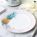 Bringen Sie die Tropen direkt in Ihre Küche mit unserem flachen Teller im Tropen-Design. Dieser elegante und farbenfrohe Keramikteller ist ideal, wenn Sie eine tropische Party planen oder einfach Ihrem Geschirr einen exotischen Akzent verleihen möchten. Jeder Teller zeigt ein unterschiedliches Motiv in sanften Pastelltönen (Rosa, Grün, Blau, Gelb-Orange) und wird so zum Blickfang auf jedem gedeckten Tisch. Die Motive sind so ansprechend gestaltet, dass sie das Auge fesseln und das Esserlebnis noch angenehmer machen.
