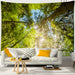 Gönnen Sie sich einen kleinen Paradiesplatz mit diesem prachtvollen Zen Wandbehang. Stellen Sie sich vor, wie Sie auf dem Boden liegen, eine sanfte Brise streicht über Ihre Haut. Um Sie herum recken majestätische Bäume ihre Kronen in den Himmel, das Blattwerk wiegt sich im Wind. Ein goldener Sonnenstrahl fällt durch die Äste und taucht alles in warmes, beruhigendes Licht. Der tiefe Blauton des Himmels vervollständigt dieses Bild reiner Gelassenheit.