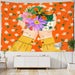 Wandteppich Blumenmotiv – Tropischer Floraler Wandbehang in Orange